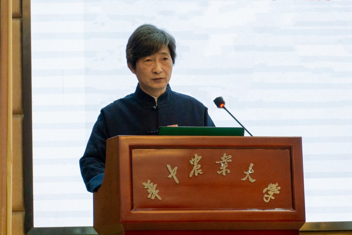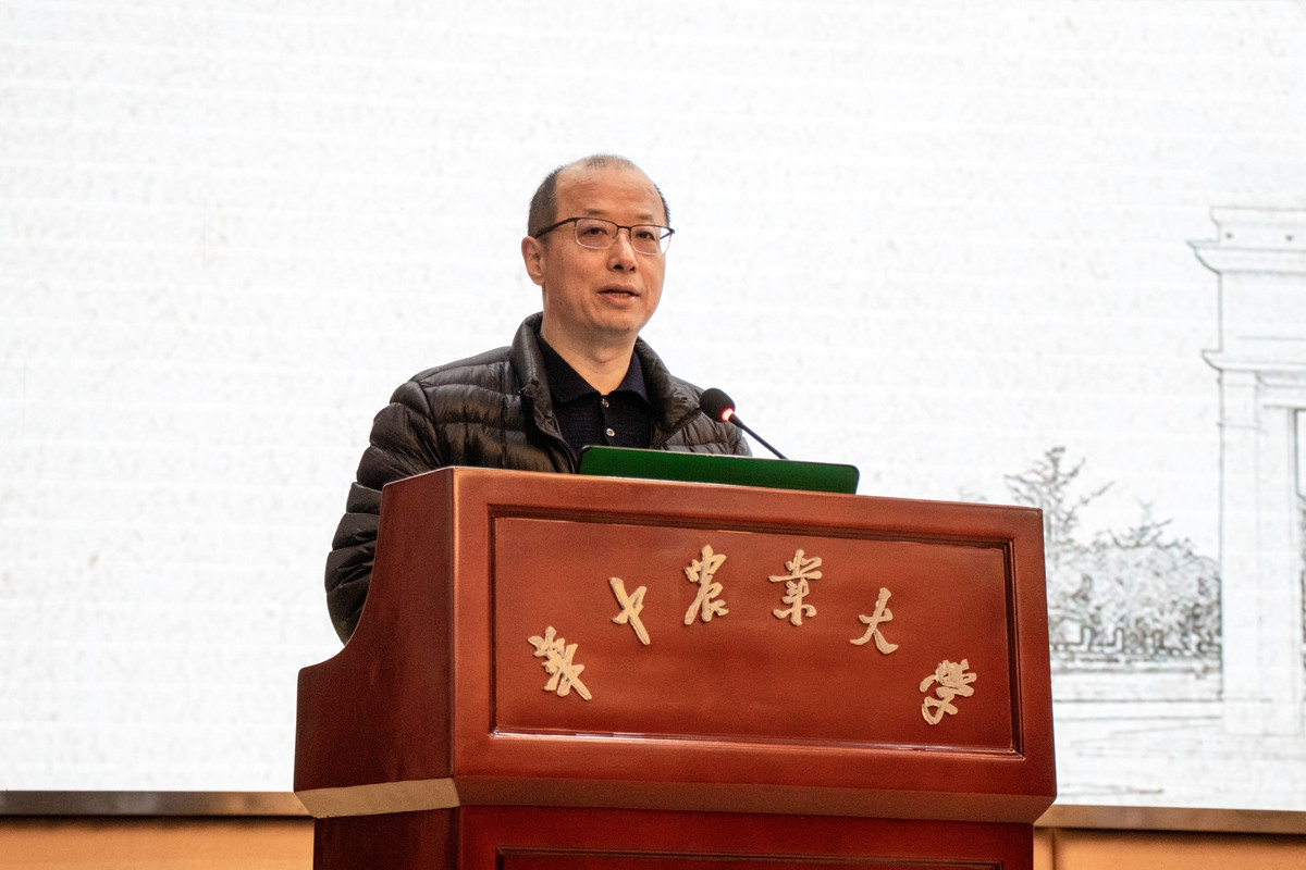 高翅代表学校领导班子作了述职述廉述党建工作报告(学通社记者 吴奕彤 摄)