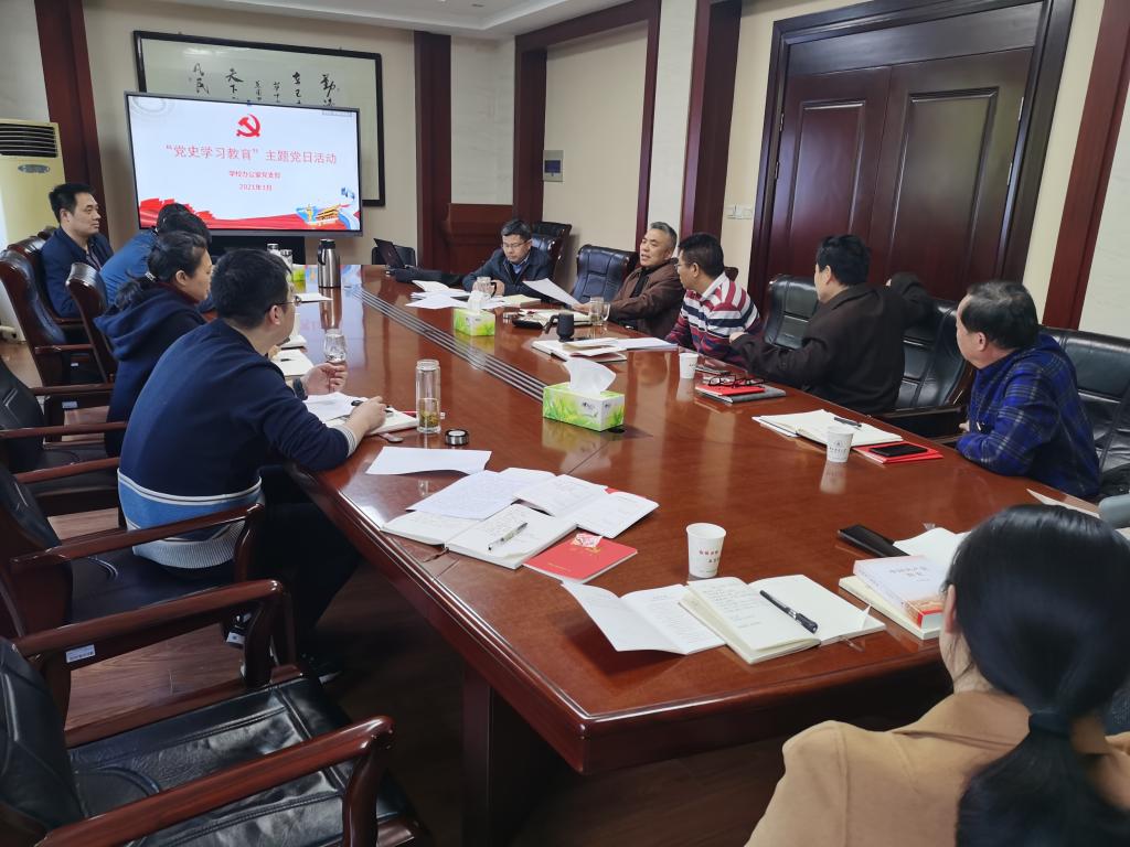 李金发同志传达学校庆祝中国共产党成立100周年活动和党史学习教育工作方案,他围绕支部成员强政治、强学习、强作风、强能力、强奉献等方面落实、落细党史学习教育的各环节和要求,同时,从加强办公室系统人员培训、信访服务提档升级和党员下沉社区服务等方面,部署党支部年度工作任务和具体活动安排。他希望全体党员干部要按照学校要求,结合学校工作要点和党史学习教育要求,坚持业务工作与理论学习相统一,坚持日常自学和专题学习相结合,强化党言党语和基本党务知识的学习,始终保持有精神、在状态,干在实处、走在前列,切实把学校办公室打造成政治上的先进机关、作风上的表率机关和工作上的示范机关。